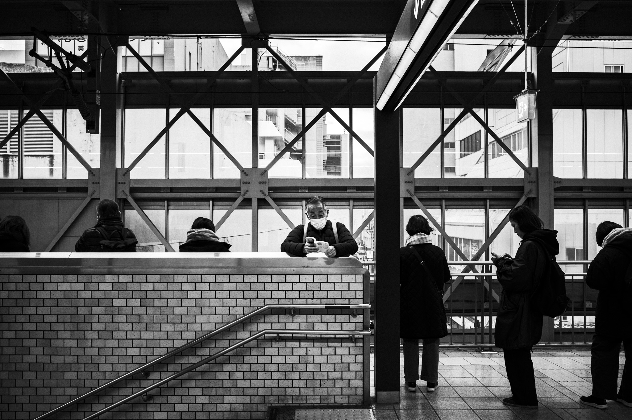 ファインダーを覗きながら僕は思う。 この鉄骨の「硬さ」があるからこそ、人の「柔らかさ」や「頼りなさ」、そしてその奥にある「温かみ」が際立つのではないか、と。